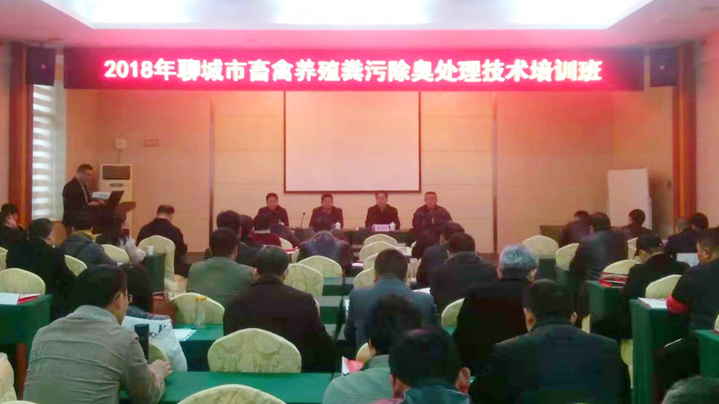 培训班上,省畜牧总站侯世忠研究员为大家讲授了畜禽养殖场臭气减控技术及环境保护税法;山东九合微盛生物公司辛磊技术总监讲授了畜禽养殖异味臭气减控技术解决方案;中国农业科学院陶秀萍教授讲授了畜禽粪污除臭技术应用;淄博九一生物公司孙文喆经理讲授了生物除臭技术应用。