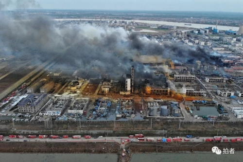 △ 3月22日0点20分,江苏响水化工厂爆炸现场仍有明火。