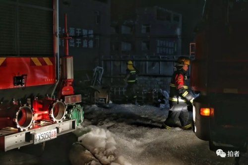 22日凌晨,前方指挥部发令发起总攻,消防员使用抗溶性泡沫冷却覆盖着火罐体。凌晨1点左右,记者在现场看到,化工厂内的火势有所减小。