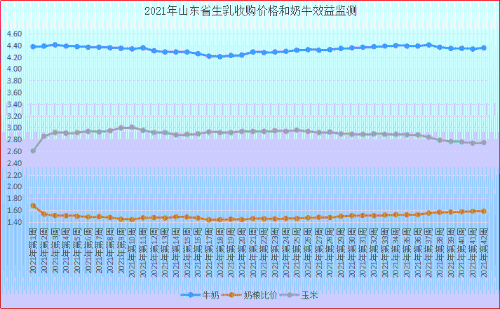 第42周(10月18日-10月24日),生乳价格回升。截至第42周我省生乳为4.36元/公斤,同比升高8.46%,环比回升0.46%。在我省监测的26个县中,剔除三个无效数据,有10个县的价格大于或等于全省平均价格,其中最高价格在潍坊安丘为4.80元/公斤;最低价格出现在文登为4.10元/公斤,最高价与最低价差值为0.70元/公斤,差价与上周相比扩大。本周奶粮比价为1.59:1,环比升高0.63%,同比回落4.22%。