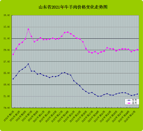 从活牛活羊市场来看,活牛活羊价格继续向上。截至42周末,活牛为34.87元/公斤,同比下降0.43%,环比回升0.03%;活羊当前最低价为30.00元/公斤,最高达到41.00元/公斤,全省平均为35.05元/公斤,同比升高0.23%,环比回升0.34%。