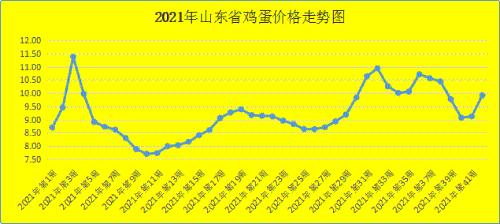 我省鸡蛋价格持续回升。第42周,我省鸡蛋销售平均价格为9.92元/公斤,同比升高32.44%,环比回升8.77%。就全省监测的26个价格县来看,目前我省最高价为10.30元/公斤,最低价为9.18元/公斤,蛋鸡配合料价格与上周相比持平。蛋雏鸡价格回升,第42周为3.14元/只,同比升高12.95%,环比回升2.28%。
