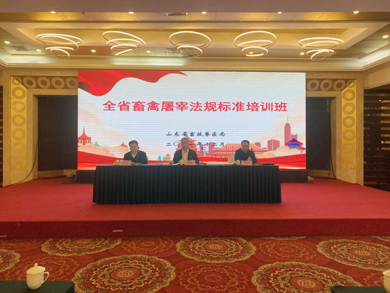 为提升我省畜禽屠宰行业管理水平,保障肉类产品质量安全,12月6-7号,全省畜禽屠宰标准培训班在淄博举办。省畜牧局畜禽屠宰管理处处长陶开宇主持开班式,省畜牧局党组成员、副局长、二级巡视员杜明宏出席会议并讲话。