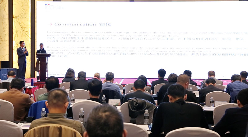 会议中,相关会议代表介绍了法国对于非洲猪瘟的预防做法和法国布列塔尼省生猪产业情况。下午,会议开设了育种技术及猪场建设论坛和猪场设备及动物营养企业B2B自由对接活动,参会人员就中法养猪技术及产品相关的进行了深入交流。接下来,山东将强化与法国在生猪品种、投入品、设施装备、猪肉精深加工以及科技方面的合作。