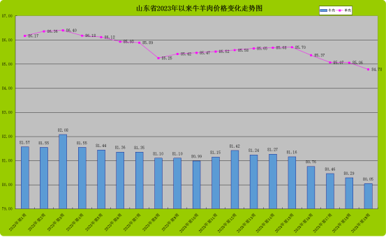 第19周,我省牛羊肉周平均价格持续弱势向下。据监测我省牛肉市场交易量同比升高2.30%,环比回落1.46%;羊肉市场交易量同比升高13.04%,环比回落3.64%。第19周,我省牛肉均价为80.05元/公斤,同比降低0.90%,环比降低0.30%;羊肉价格为84.78元/公斤,同比降低2.19%,环比降低0.33%。