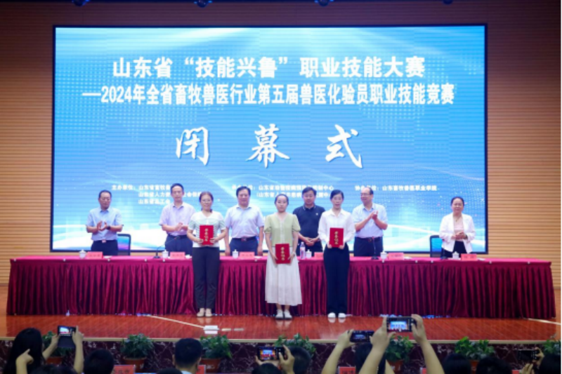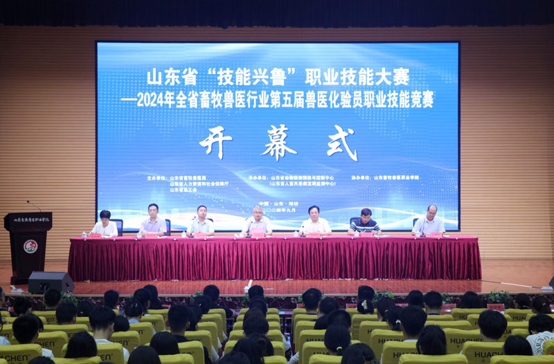 9月19日-20日,山东省“技能兴鲁”职业技能大赛——2024年全省畜牧兽医行业职业技能竞赛第五届兽医化验员职业技能竞赛决赛在潍坊举办,本次决赛由省畜牧兽医局、省人力资源和社会保障厅、省总工会主办,省动物疫病预防与控制中心承办,山东畜牧兽医职业学院协办。省畜牧局党组成员、副局长刘国华出席开幕式并讲话。山东畜牧兽医职业学院党委书记郑立森,省农林水工会副主席张言国,中国动物卫生与流行病学中心禽病室主任刘华雷,省畜牧局直属机关工会主席、一级调研员康洪亮,省动物疫病预防与控制中心主任兰邹然、副主任陈静,潍坊市畜牧业发展中心副主任邱海芳、王学荣等出席开幕式和闭幕式。