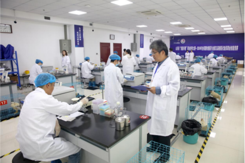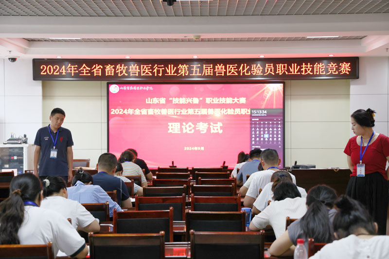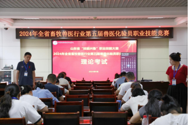 本次兽医化验员职业技能竞赛决赛分为理论知识考试和现场技能操作考核两部分,重点考核重大动物疫病和人畜共患病防控知识和检测采样操作技能。