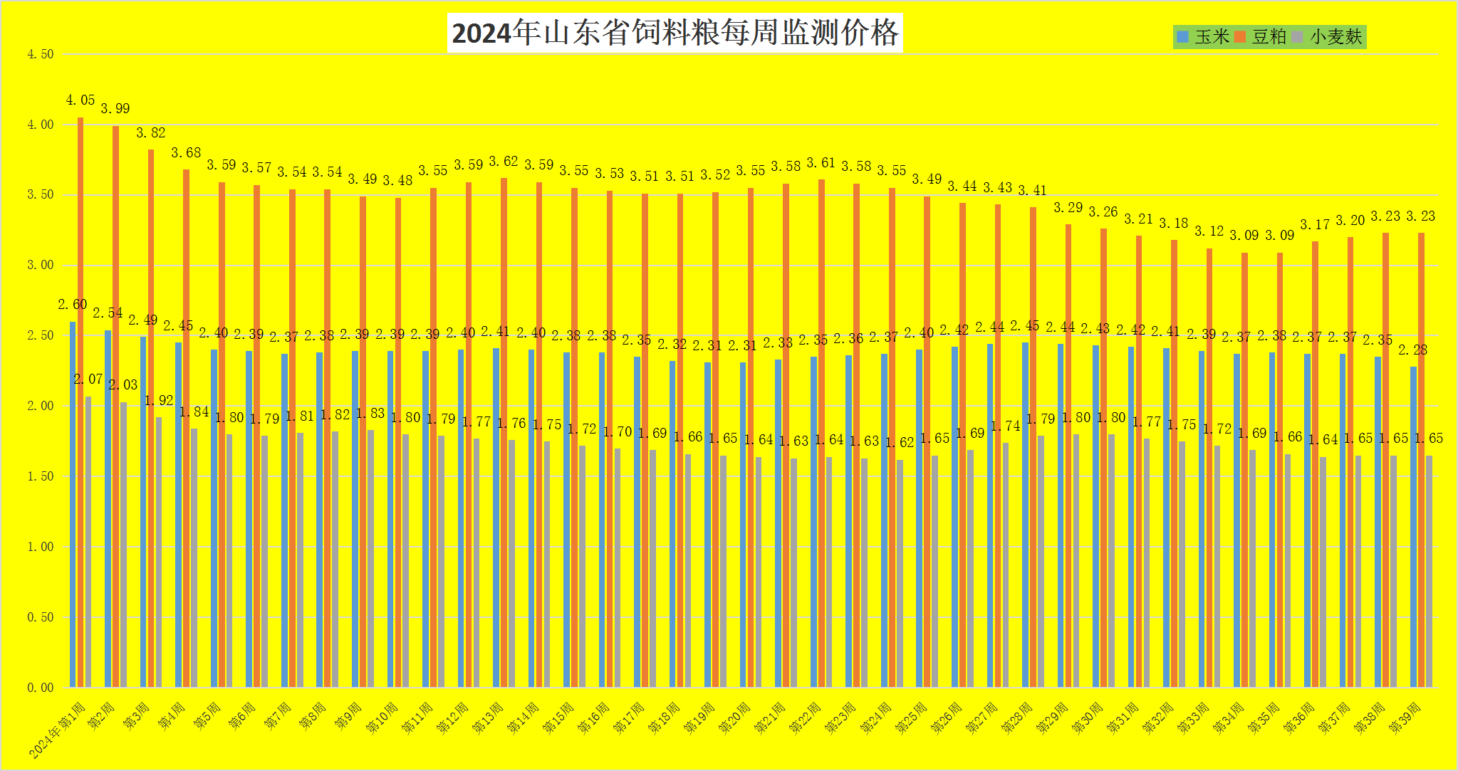 六、第39周,饲料粮稳中有降,配合料持续承压