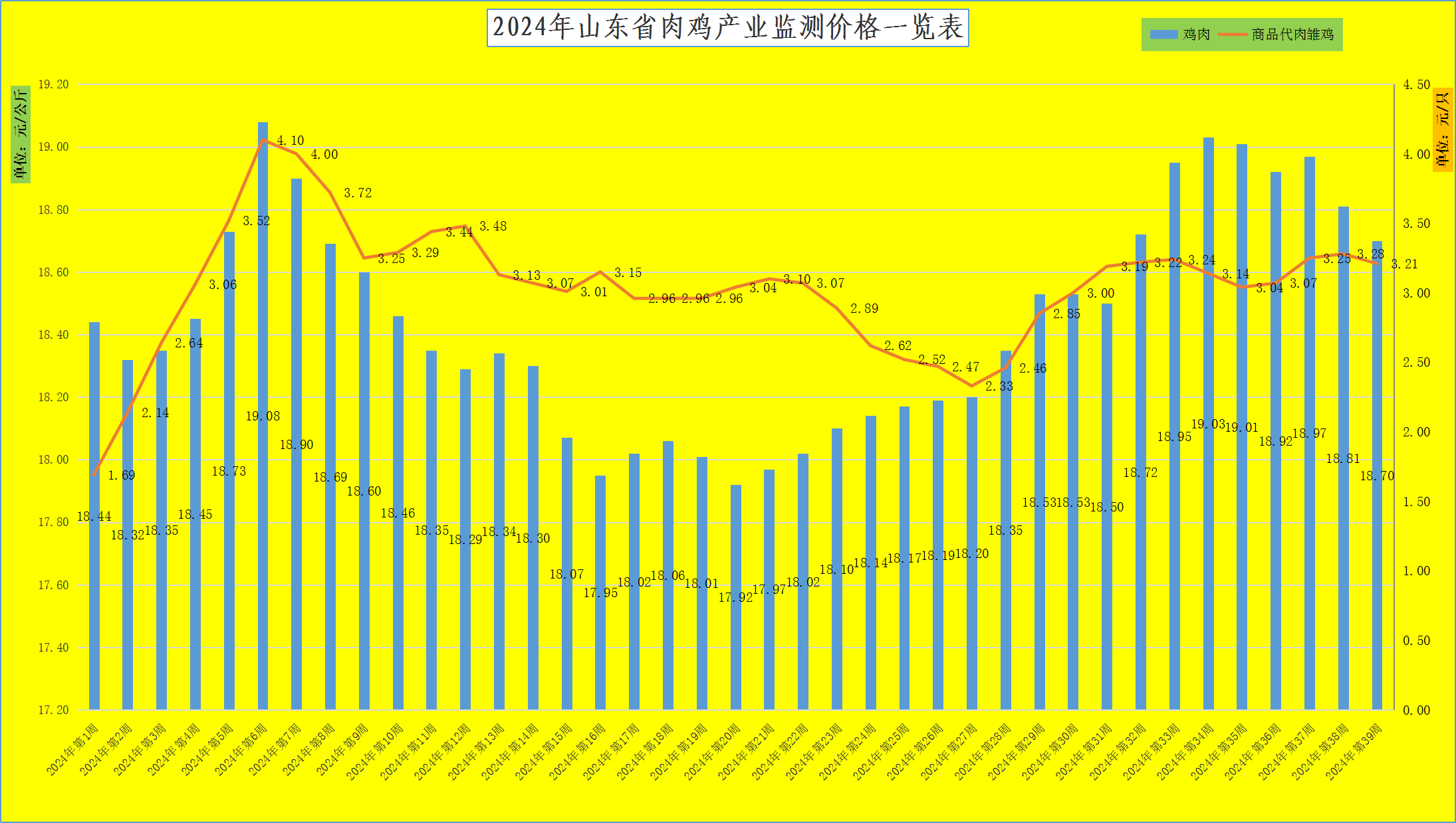 三、第39周,鸡肉价格继续走低,肉雏鸡价格弱势回落