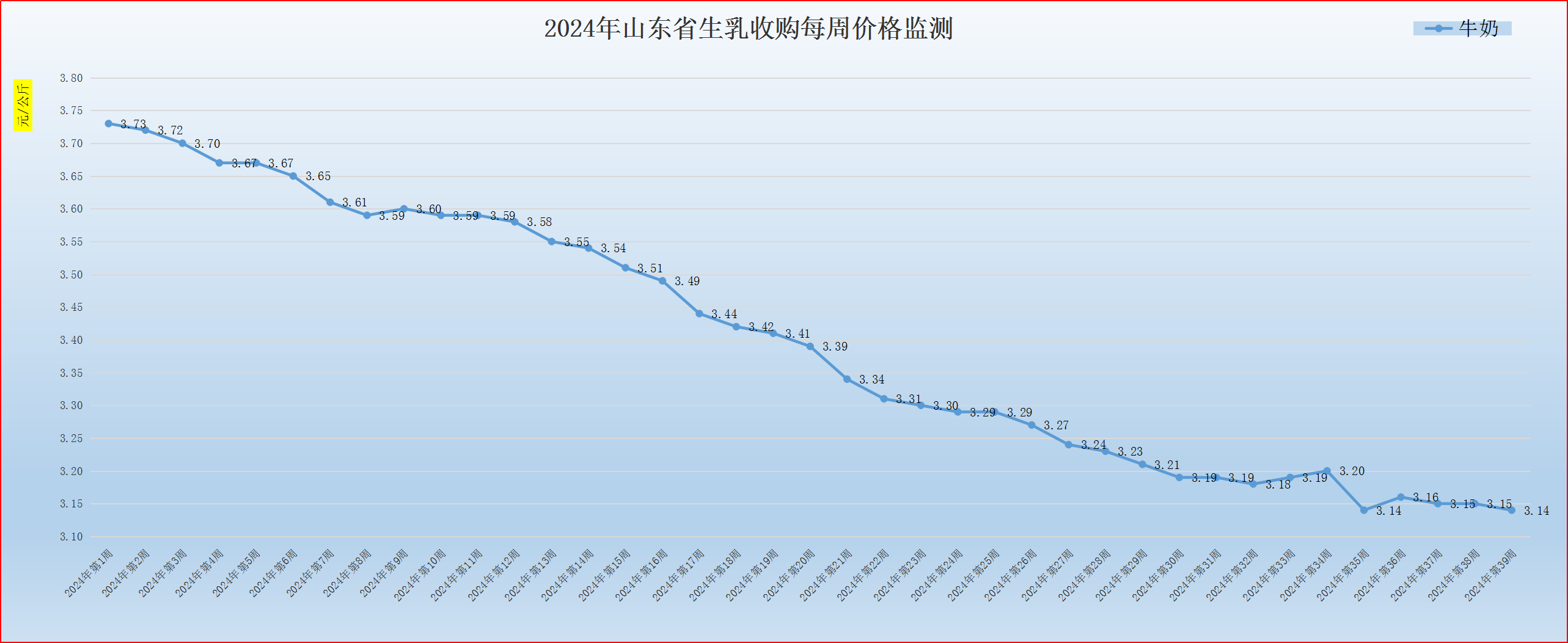 五、第39周,生乳价格承压再走低