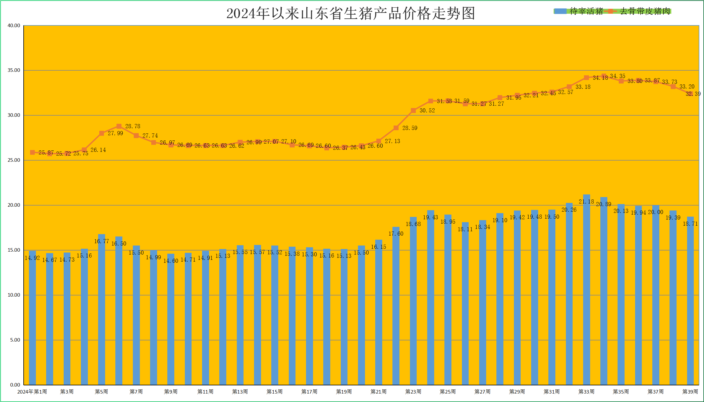 一、第39周,生猪价格继续走低,仔猪价格连跌14周