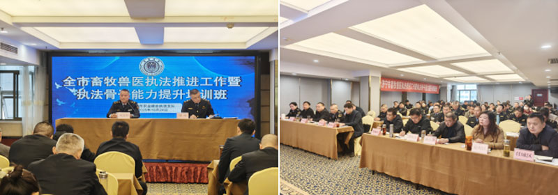 为进一步推进全市畜牧兽医执法工作,提升执法能力,2025年10月24日,济宁市农业综合执法支队举办全市畜牧兽医执法推进工作暨执法骨干能力提升培训班,县(市、区)分管畜牧兽医执法工作负责人、县(市、区)大、中队(科室)负责人、市县两级执法骨干共计69人参加培训。