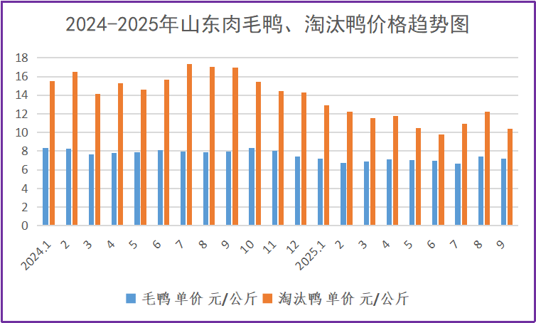 成本核算:根据2025年三季度生产资料价格计算:大鸭,以饲养37-40天,出栏毛鸭3公斤为例,只鸭成本约20.1元/只,合毛鸭6.7元/公斤,其中饲料15.8元,苗2.3元,药费0.4元,人工1元,其他0.6元。小鸭,以饲养25-28天,出栏1.8公斤为例,只鸭成本约11.3元/只,合毛鸭6.28元/公斤,其中饲料8.1元,苗1.8元(低价投放多),药费0.3元,人工0.7元,其他0.4元。