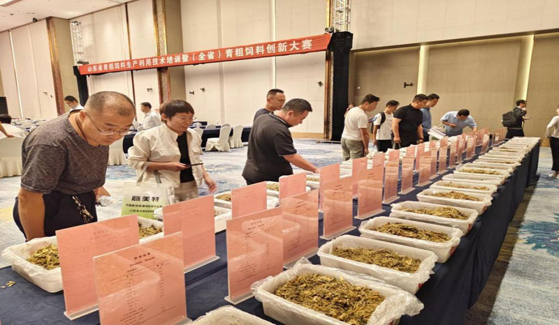 培训期间,举办了青粗饲料生产利用技术创新大赛。本次大赛包括质量评鉴和创新方案PK两部分。大赛上,由中国农科院、省农科院、山东农业大学、青岛农业大学等专家教授组成的现场评审专家组,对各市推送的45家单位的青贮饲料样品进行了色、味、触等感官评分,并对同期选送的14项粗饲料生产利用技术方案的创新性、实用性、推广效果、推介水平进行了现场评比。经严格评选、综合评价评选出“优质青贮饲料”企业一等奖5家、二等奖10家、三等奖15家,“创新技术”8项,“优秀组织奖”5个代表队。