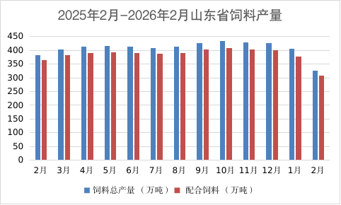 据监测,2月份山东省饲料总产量约为326万吨,同比下降14.9%,环比下降19.5%。其中,配合饲料产量约为309万吨,同比下降15.3%,环比下降18.3%;浓缩饲料产量约为5.7万吨,同比下降18.9%,环比下降28.8%;添加剂预混合饲料产量约为5.8万吨,同比下降13.4%,环比下降42%。